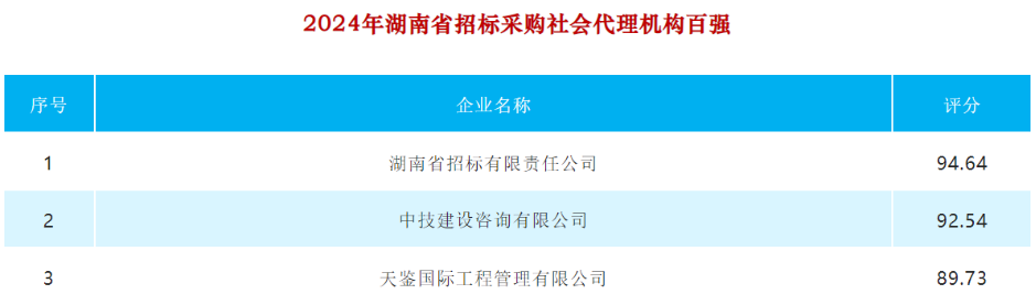 我司榮膺2024年湖南省招標(biāo)采購(gòu)社會(huì)代理機(jī)構(gòu)TOP100