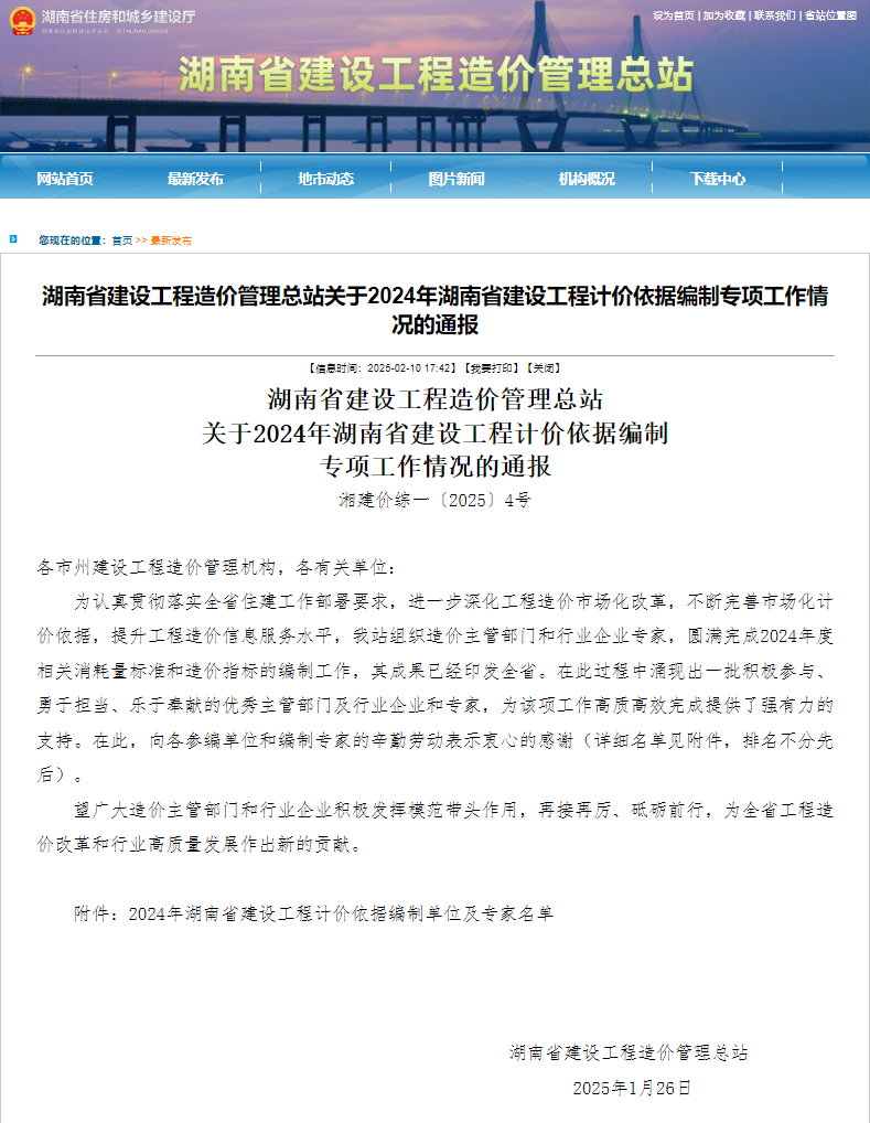 在湖南省2024年度相關(guān)消耗量標(biāo)準(zhǔn)和造價(jià)指標(biāo)編制工作中,我司陳鳳、賀偉洲、劉支農(nóng)、陳艷平四位同事表現(xiàn)優(yōu)異,憑借深厚的專(zhuān)業(yè)實(shí)力為優(yōu)化省內(nèi)建設(shè)工程造價(jià)計(jì)價(jià)管理依據(jù)、營(yíng)造良好的工程造價(jià)行業(yè)發(fā)展環(huán)境做出重要貢獻(xiàn),獲得造價(jià)總站高度贊譽(yù)。