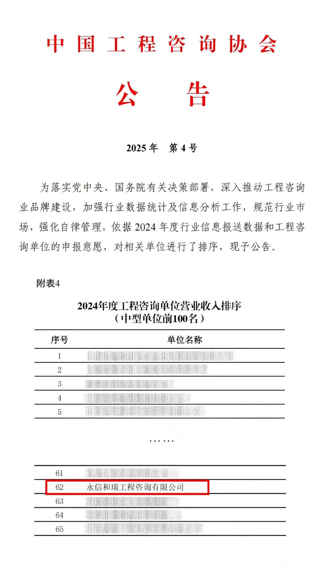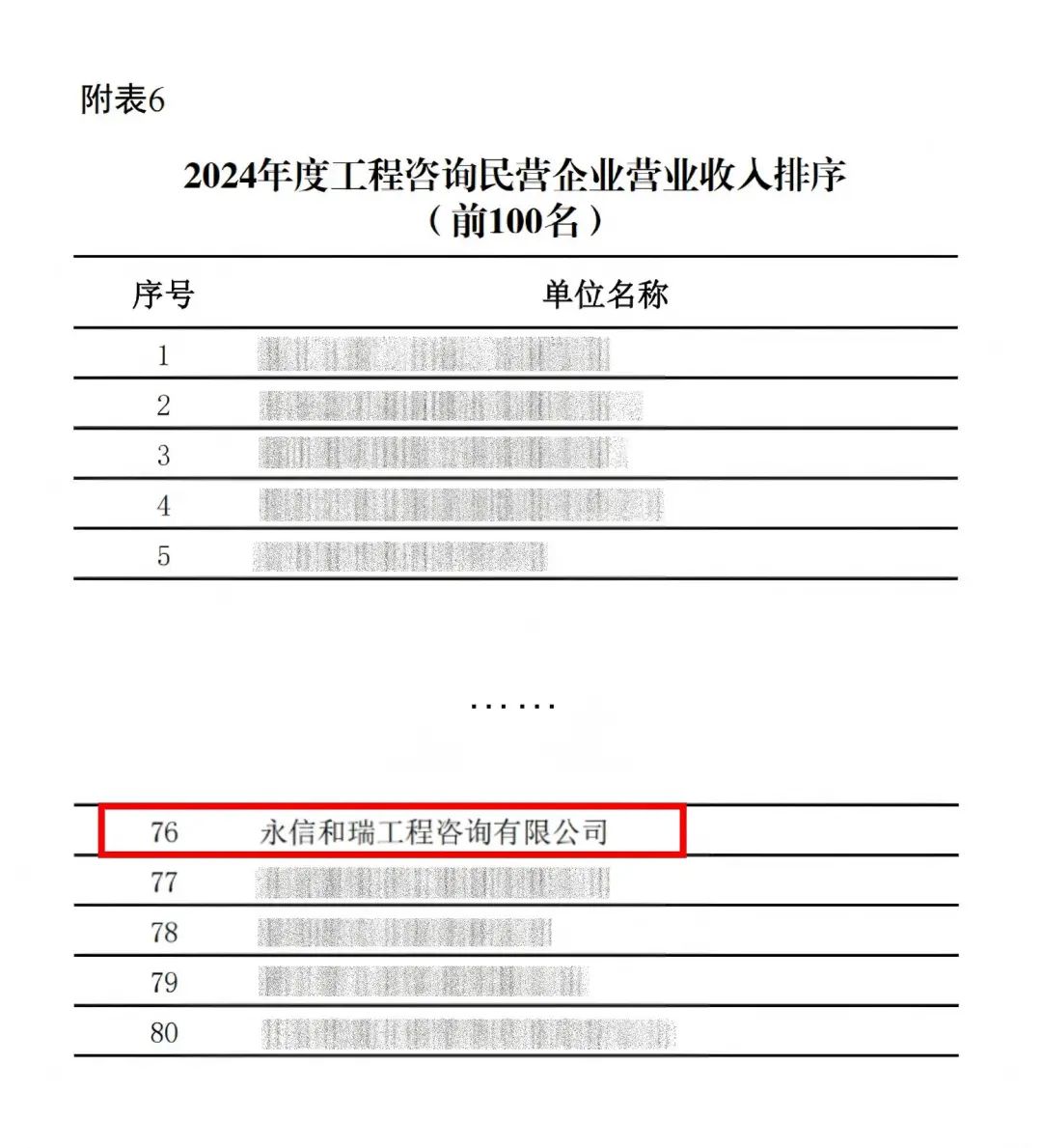 永信和瑞在本次排名中表現突出,位列工程咨詢民營企業營業收入100強榜單第76位、中型單位營業收入100強第62位。