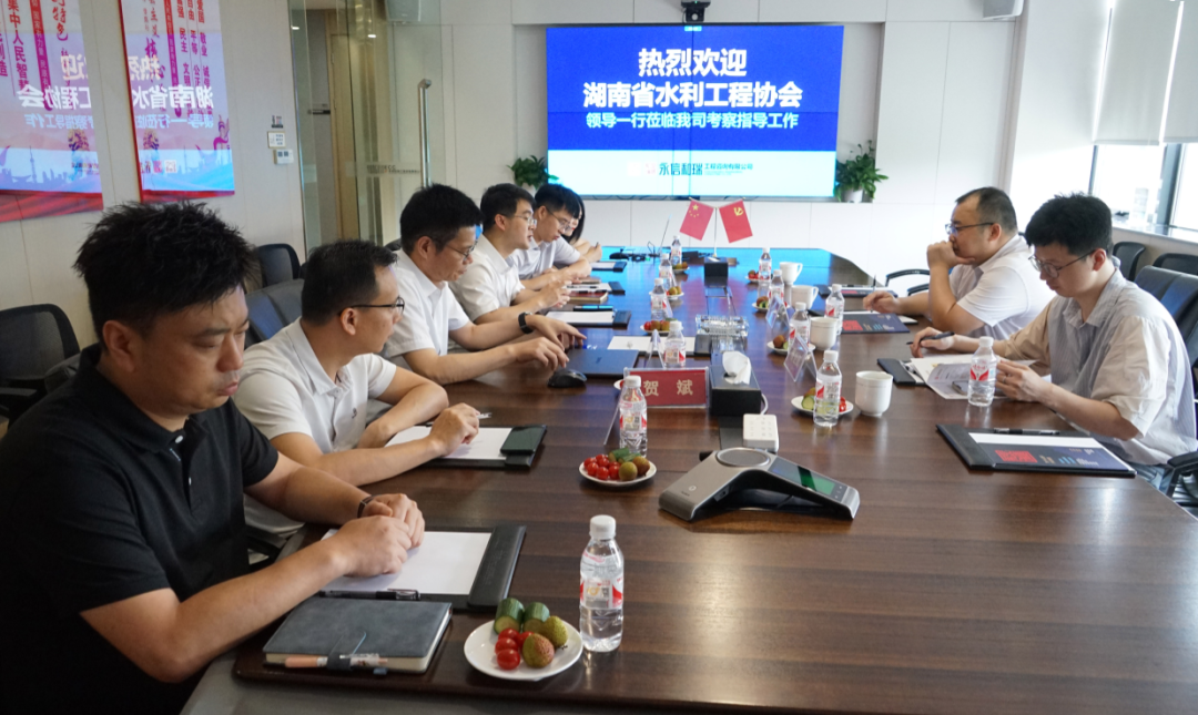 2024年6月14日,湖南省水利工程協會副秘書長朱航宇、副部長唐世聞等一行到訪永信和瑞,公司總經理張東紅、經營部總經理胡桃林、造價事業部總經理郭勁松、招標事業部總經理陳輝、監理事業部總經理雷祥明等熱情接待。
