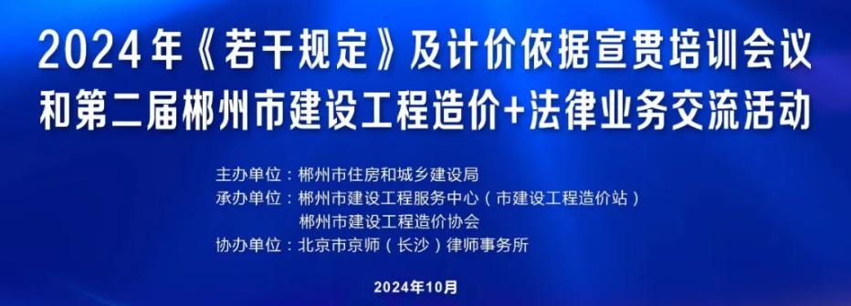 10月31日,由郴州市住建局主辦,郴州市建設工程服務中心和郴州市建設工程造價協會承辦的2024年《湖南省政府投資建設工程造價管理若干規定》及《湖南省房屋建筑與裝飾工程概算消耗量標準》等計價依據宣貫培訓和第二屆造價+法律業務交流活動如期舉辦。來自縣市區發改、財政、審計、住建、城管、水利、交通等部門、平臺公司、相關政府投資建設單位和造價咨詢企業、建筑企業360余人參加了本次宣貫培訓和業務交流活動。
