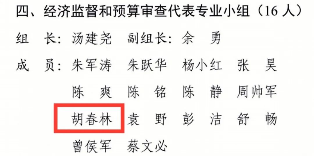 胡春林入選“第十六屆長沙市人大經濟監督和預算審查專家”